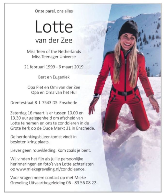 Familie overleden lotte (14) uit almelo: lotte almelo. Dat gebeurt achter gesloten deuren, doordat.